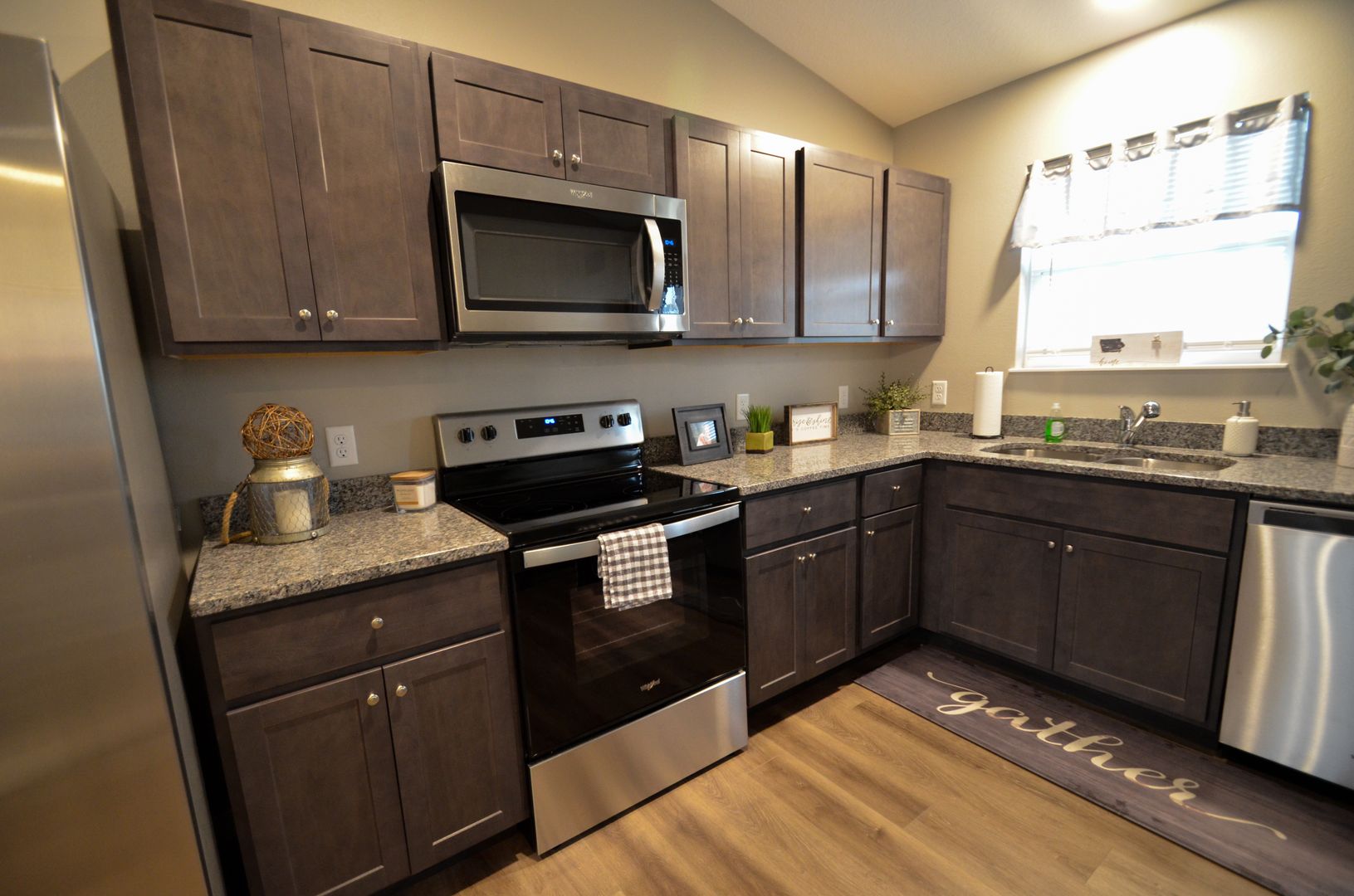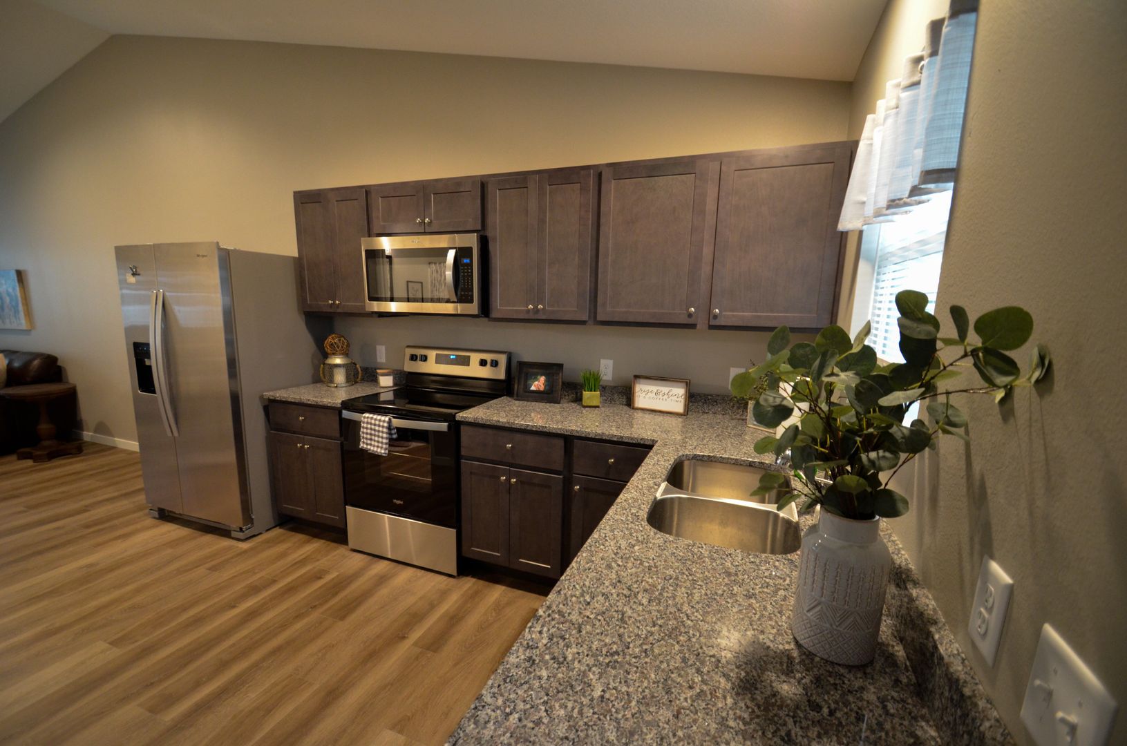 Open floor plan with a large great room. Granite countertops with stainless steel appliances. A private back patio. In unit washer and dryer.