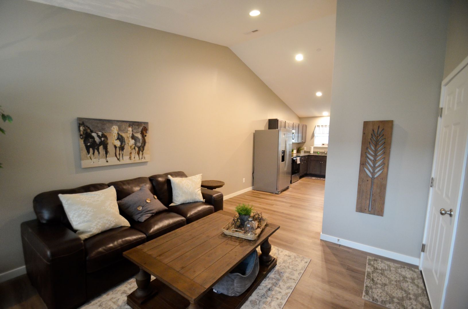 Two bedroom, one bathroom ranch style unit with open floor plan, in-unit washer and dryer, and off-street parking. Features included stainless steel appliances, vaulted ceiling, private patio, and zero-entry thresholds. Wi-Fi, garbage, lawn care and snow removal included.